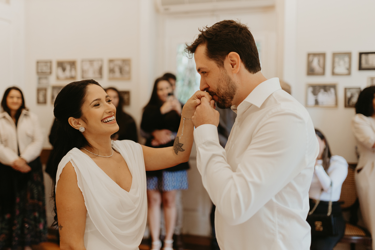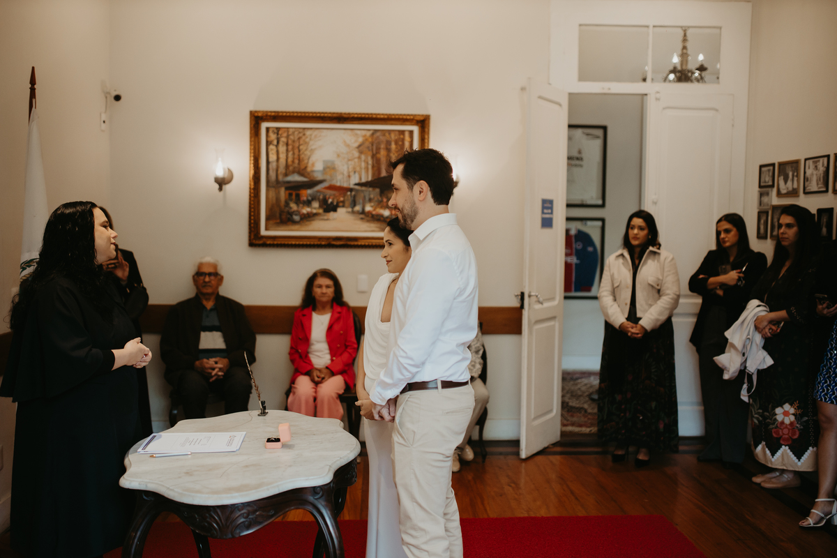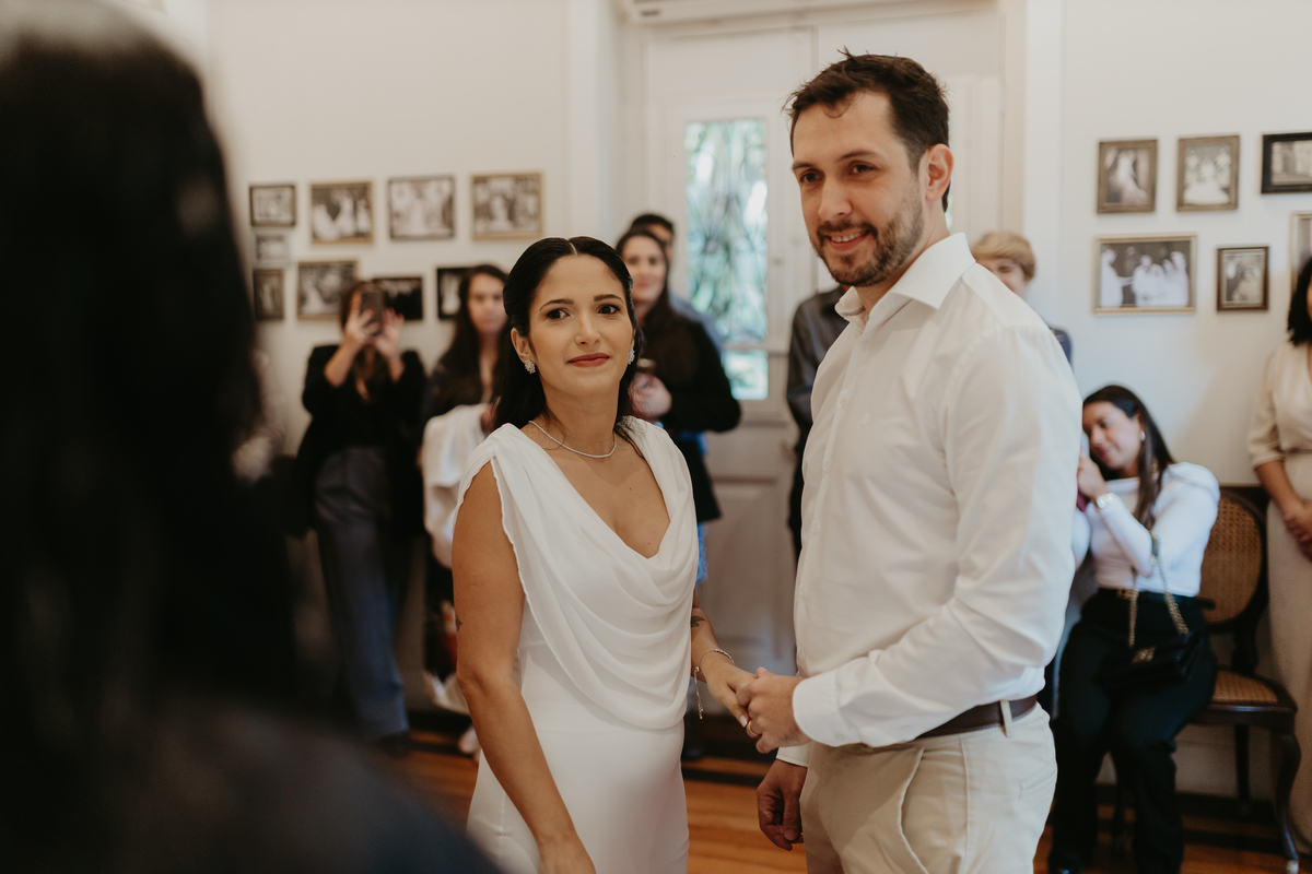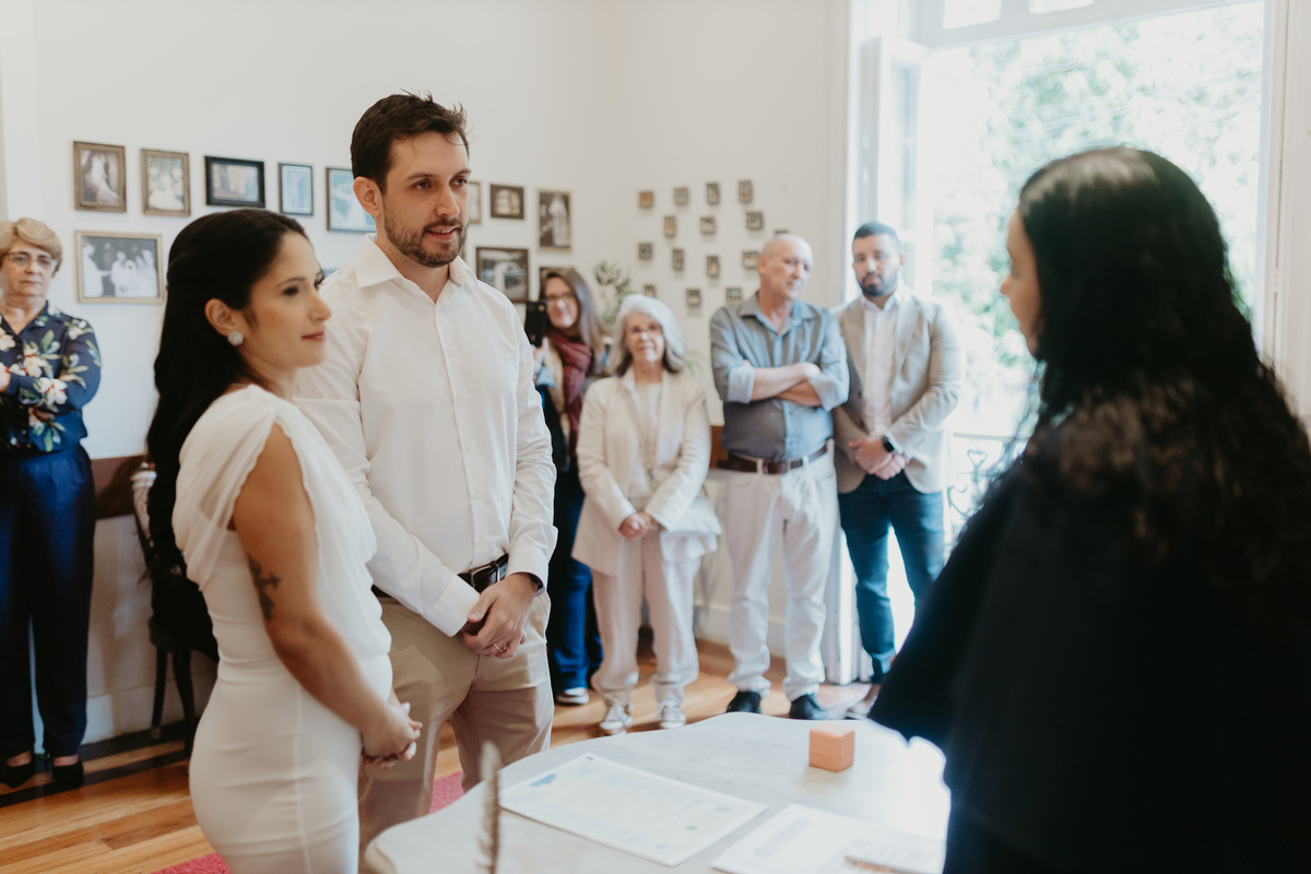 Uma cerimonia minimalista e acolhedora, onde Rafa e Fabricio reuniram as pessoas mais importantes de suas vidas ali para celebrarem a união.